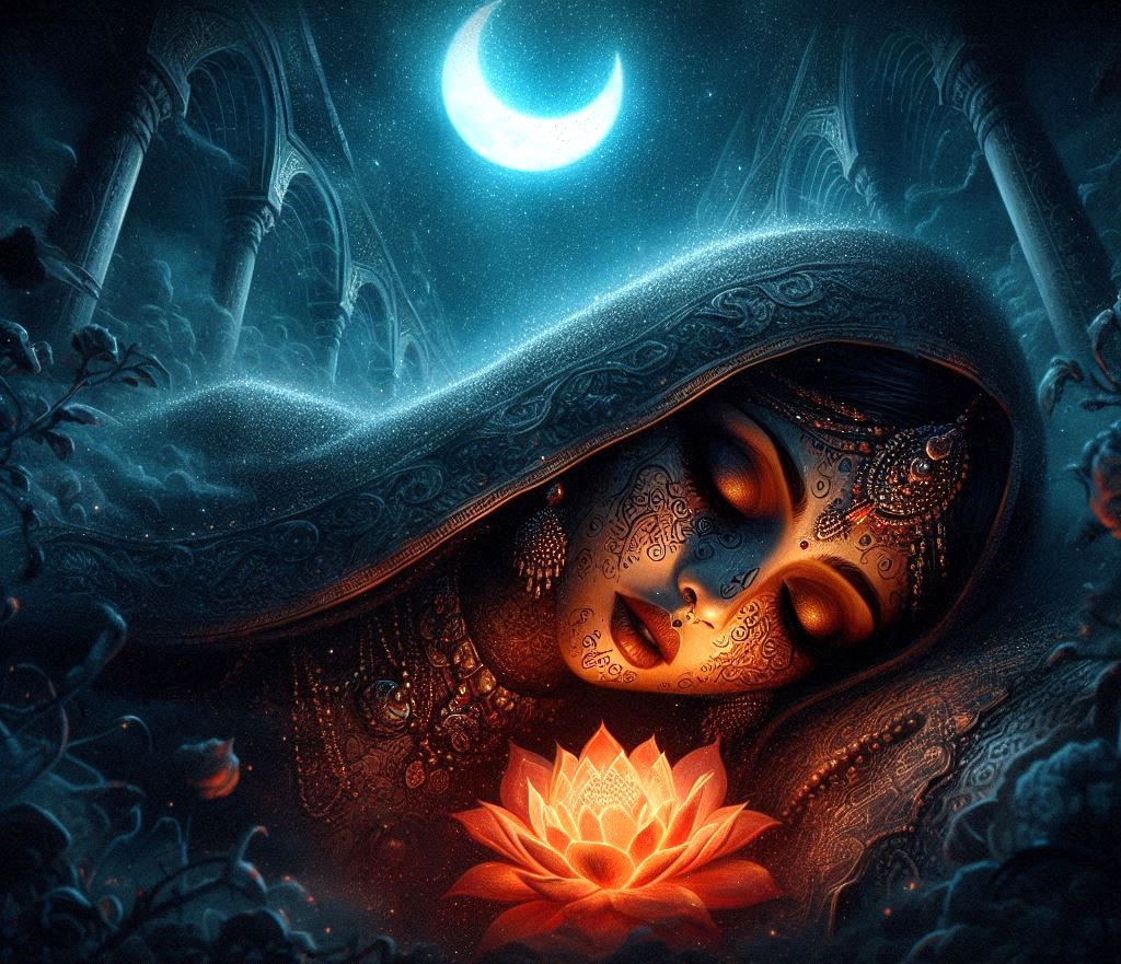রাজপ্রাসাদে ফিরে এসে মধুবালা ফুলটি নিজের কক্ষে রাখল। রাত বাড়ার সঙ্গে সঙ্গে কক্ষের বাতাস ভারী হতে লাগল, আর আশ্চর্যজনকভাবে ফুলটি আরও লালচে হতে শুরু করল। হঠাৎ মধুবালা অনুভব করল, তার শরীর ভারী হয়ে যাচ্ছে, চোখে অন্ধকার নেমে এল, এবং সে গভীর ঘুমে তলিয়ে গেল। সে জানত না যে সেই ফুলের মধ্যেই লুকিয়ে আছে এক প্রাচীন অভিশাপ, যা তাকে নিয়তির এক অজানা পথে নিয়ে যাবে।