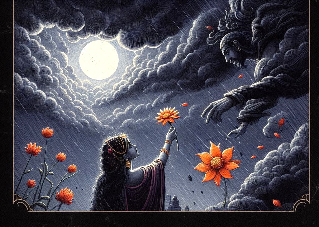 কিন্তু তাৎক্ষণিকভাবে একটি প্রবল ঝড় শুরু হল। মাটি থেকে আকাশ পর্যন্ত কালো মেঘ ঢেকে দিল চারপাশ। মধুবালা আতঙ্কিত হয়ে পড়ল। কিন্তু ততক্ষণে ফুলটি তার হাতে শক্তভাবে ধরে ফেলেছিল।