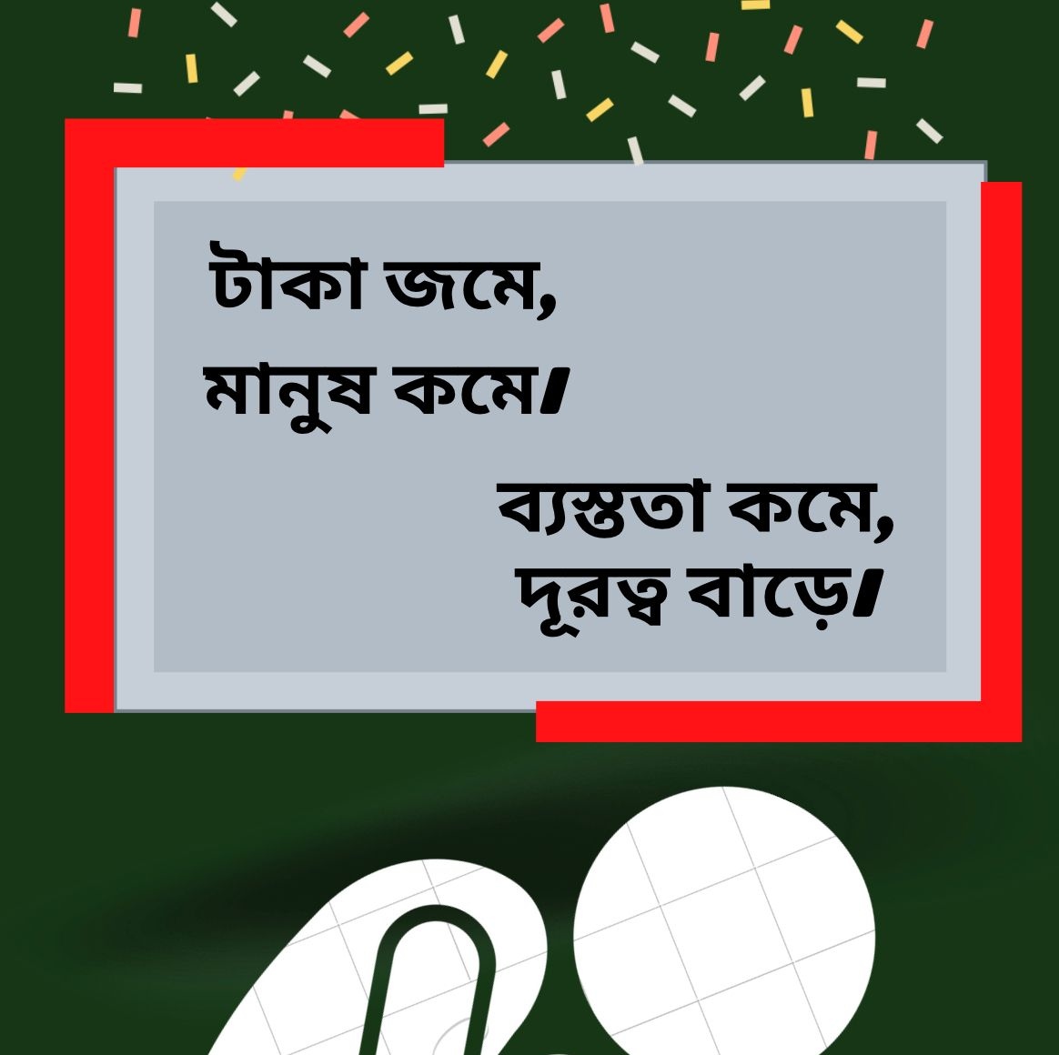 টাকা জমে,মানুষ কমে।ব্যস্ততা কমে,দূরত্ব বাড়ে। "।