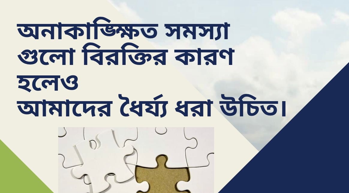 অনাকাঙ্ক্ষিত সমস্যা গুলো বিরক্তির কারণ হলেও আমাদের ধৈর্য্য ধরা উচিত।
