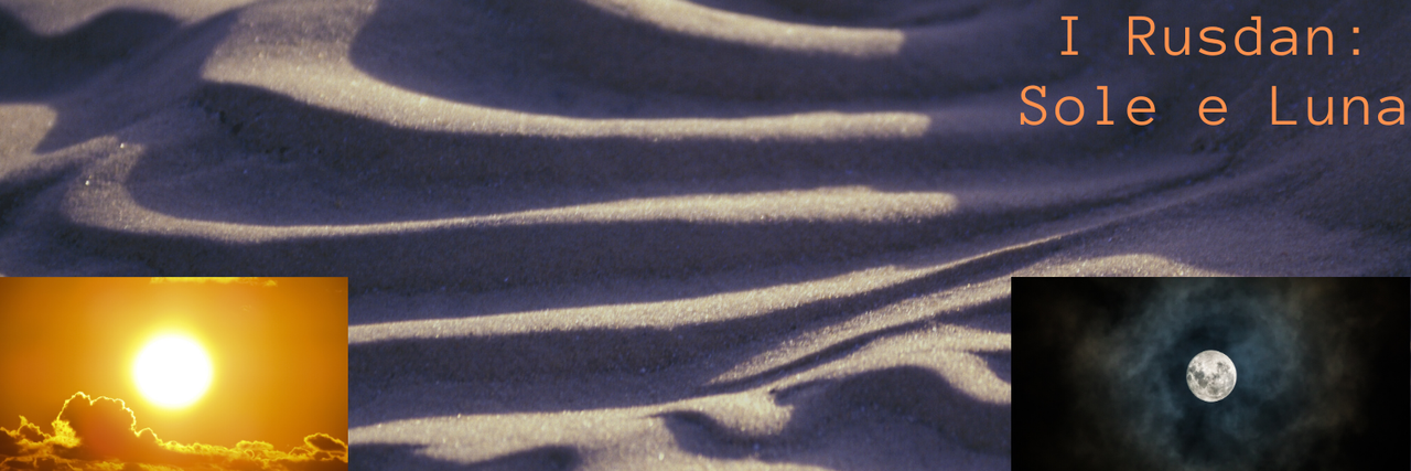 I Rusdan, pusillanimi abitanti del deserto e grandi commercianti, adoravano soltanto due Dei: il Dio Sole e la Dea Luna. Questi due avevano la massima espressione con il Giorno e la Notte e scandivano le vite degli abitanti del deserto e delle oasi dove erano state costruite le città.