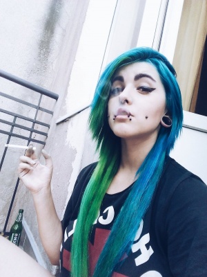 My hair was half blue and half green. That isn't that important, but it looked good.
