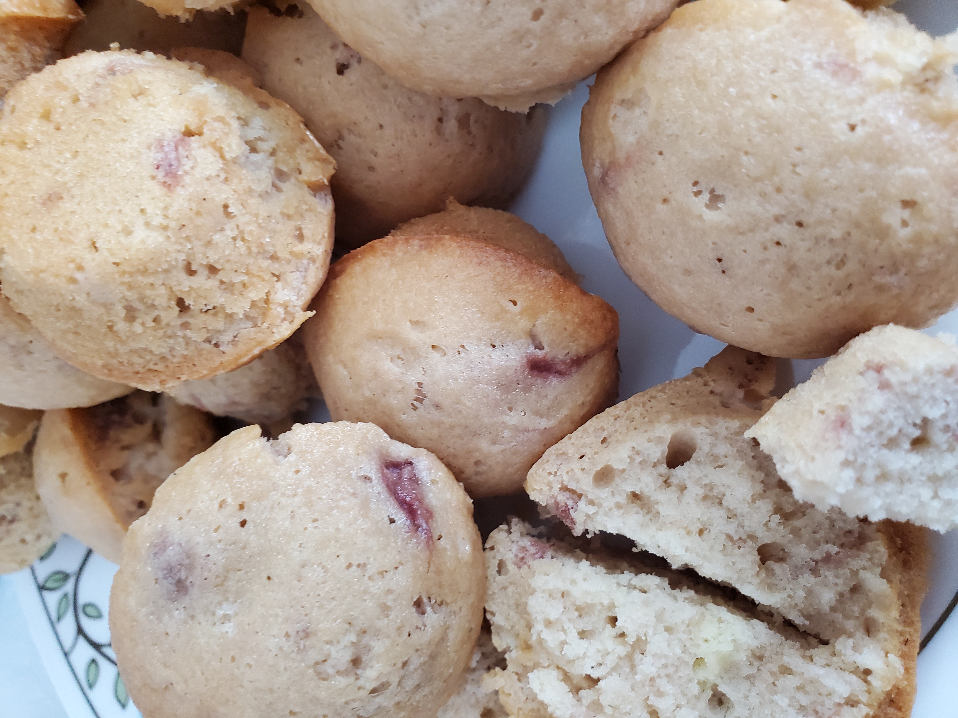 Since strawberry are on sale I made some muffins from them.But personally I feel that they are not looking yummy as they are too pale.I should have added more red color.