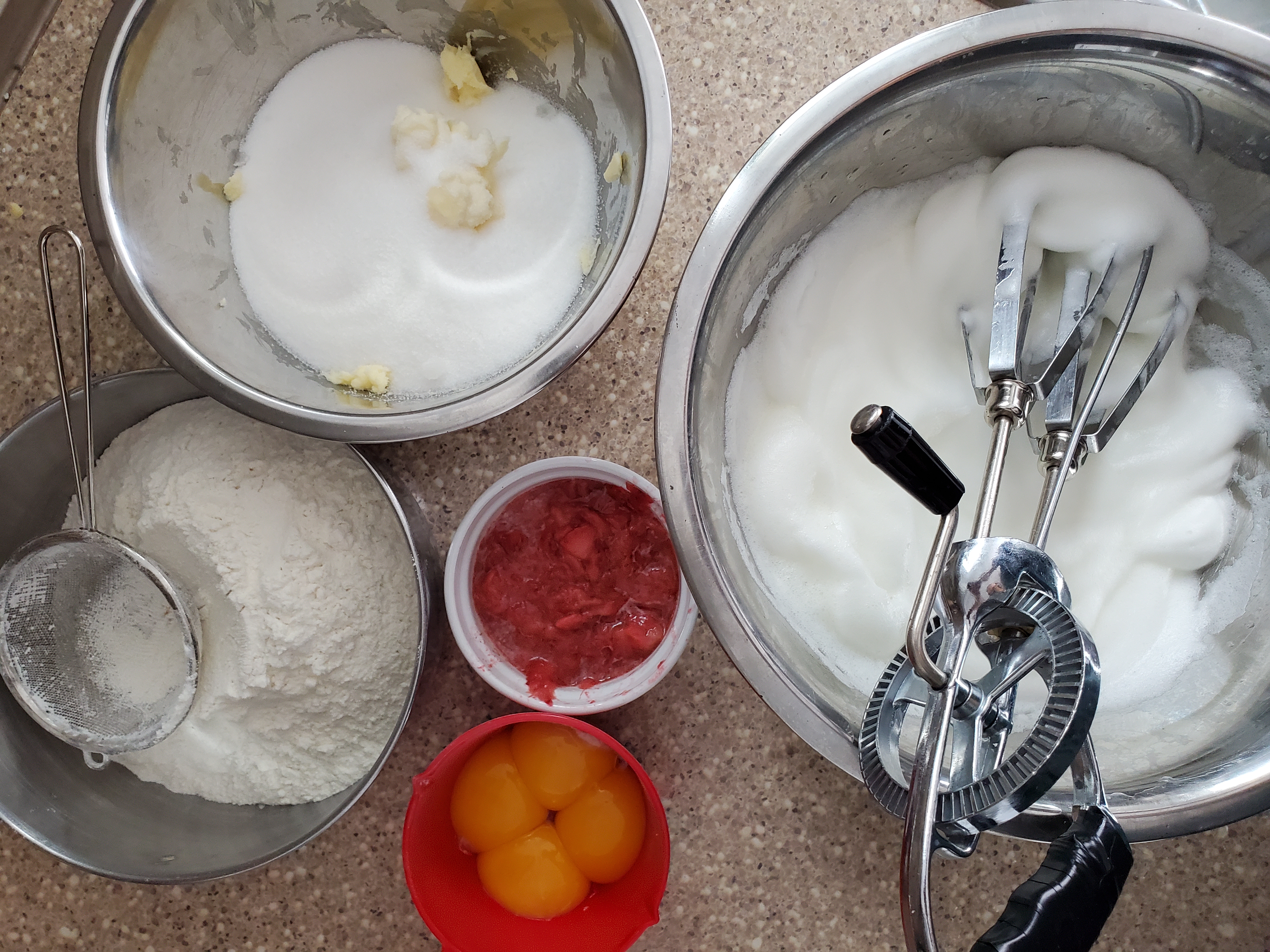 As you can see I use three different bowls.One bowl was the softened butter and white sugar while another bowl is the egg white which I beat till soft peaks appear.And lastly the other bowl was for dry ingredients which consist of cake flour .