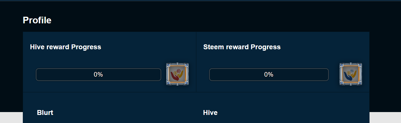 프로필 페이지에 방문하면 두 개의 보상 진행 바를 볼 수 있습니다: 하나는 Hive를 위한 것이고, 다른 하나는 Steem을 위한 것입니다. 진행 바가 모두 채워지면 옆에 있는 보상 상자를 클릭하여 보상을 받을 수 있습니다.