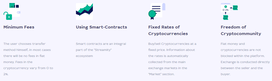 The key component of the Streamity project is StreamDesk – a decentralized blockchain-based application that will enable clients to change over virtual currencies into fiat money with no middle people. It will likewise guarantee staged exchange of most cryptocurrencies that are exchanged the market.