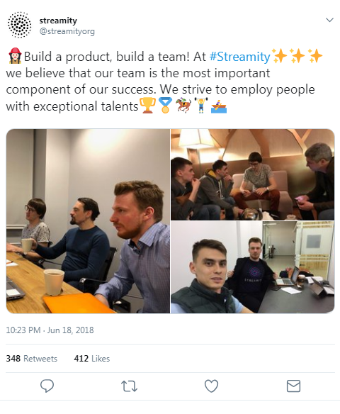 Streamity put a lot of focus on hiring team for the project. In one of the tweet Steamity write: