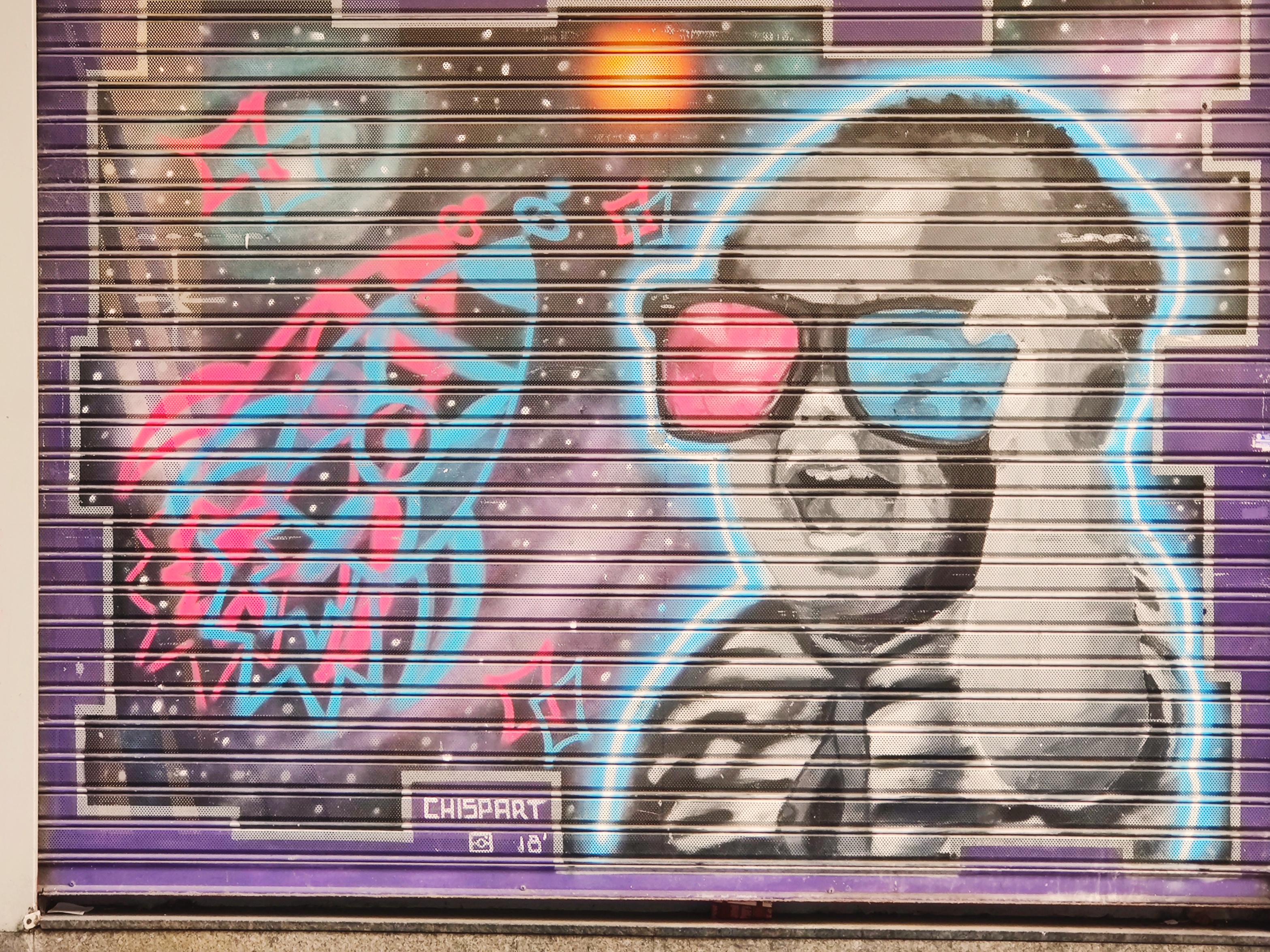This little guy is having a great time with his rocket and special glasses. It appears on one of those rolling shutters here in the Capitol city.