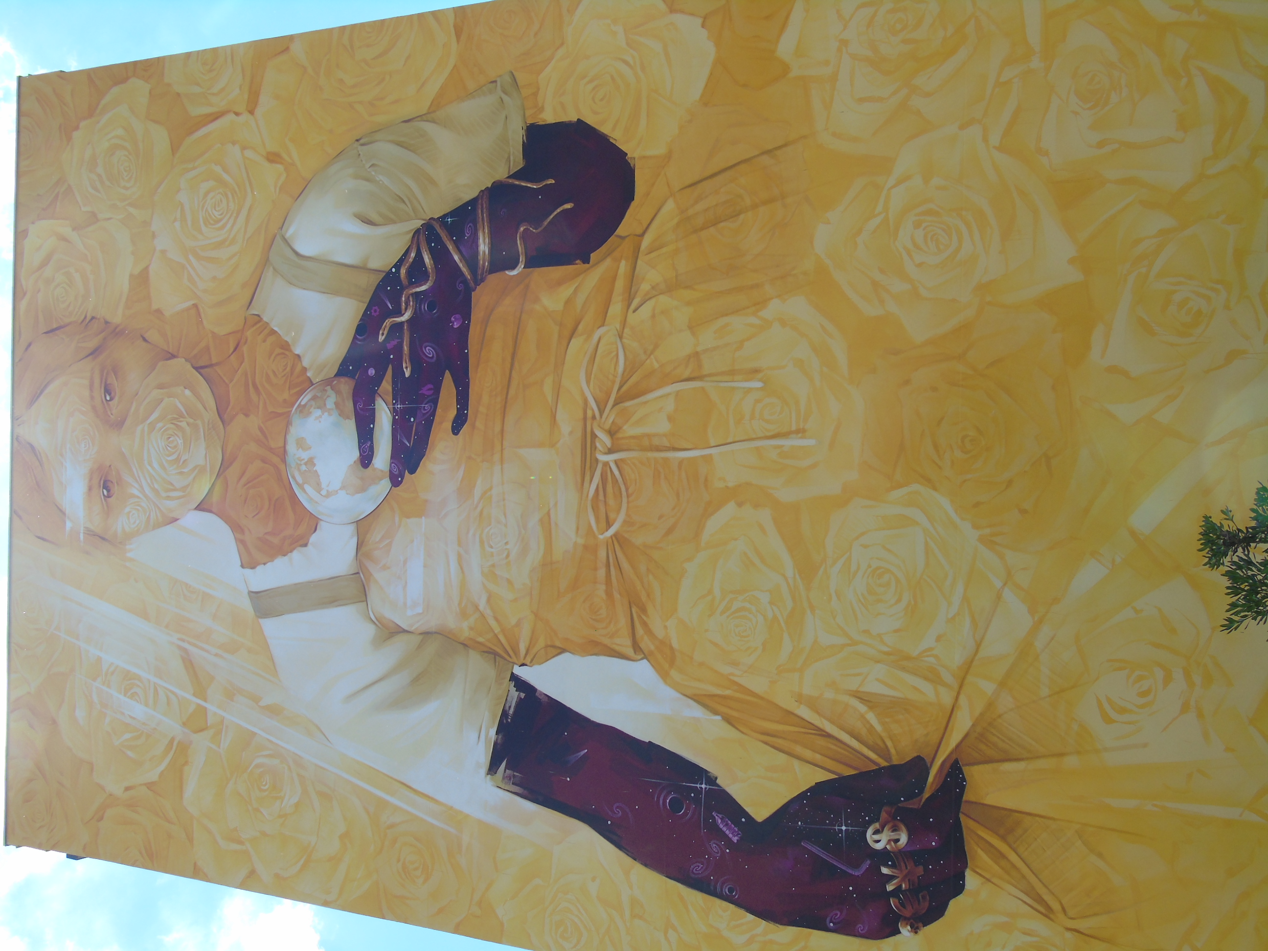 Une magnifique création avec ce jaune soleil, mais vous remarquez que le personnage porte un masque.