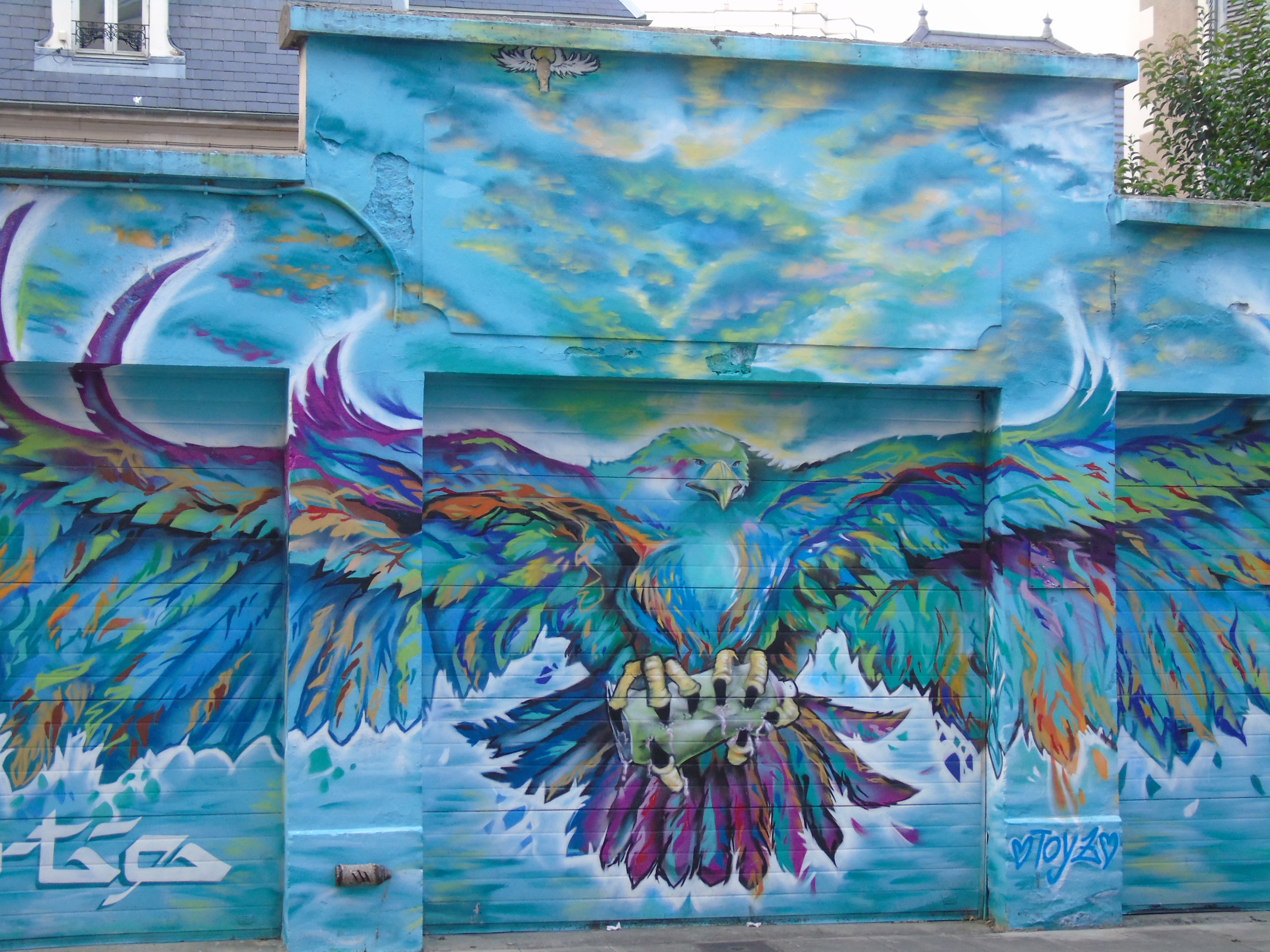 Un aiglecurart38 (62)in #streetart • 6 months ago Salut à tous, un magnifique aigle sur des notes bleutées. Avec ses ailes déployées il prend la place de 3 portes de garage, autant vous dire qu'il est immense. Bonne journée à vous. #photography #art #blog