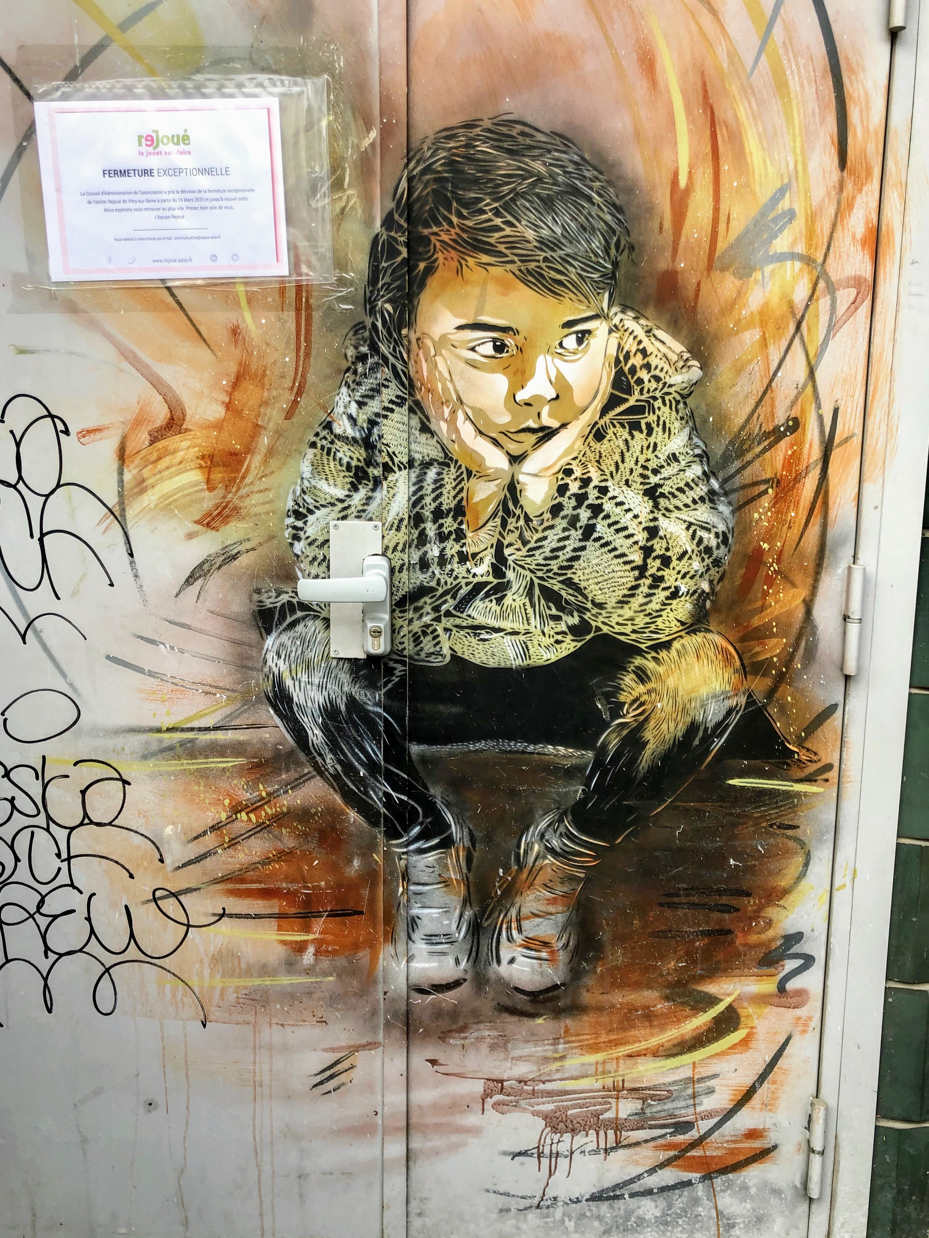 Street-art à Vitry-Sur-Seine : l'enfant assis par C215