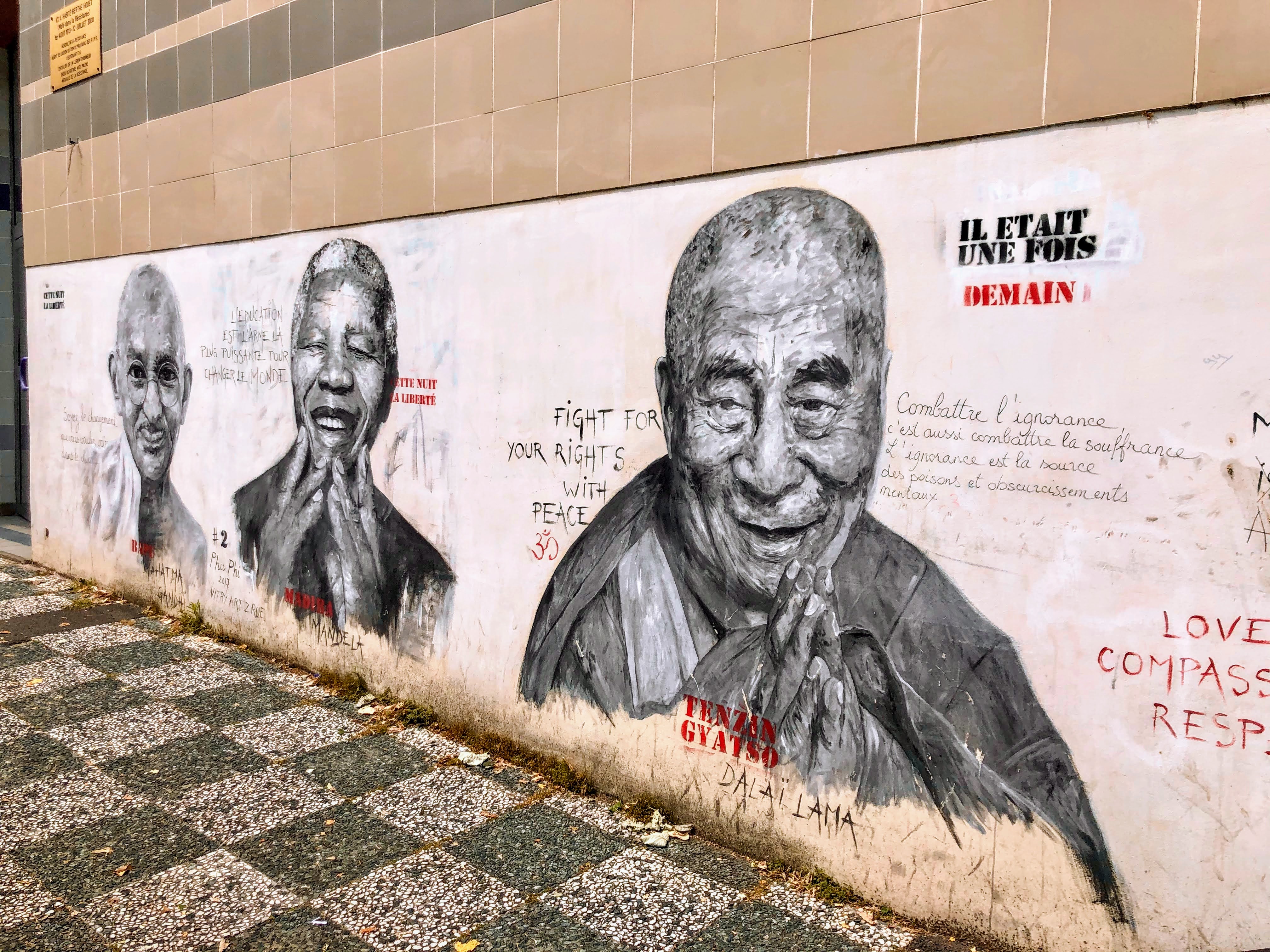 Street-art à Vitry-Sur-Seine, place des Grands hommes : Dalaï Lama