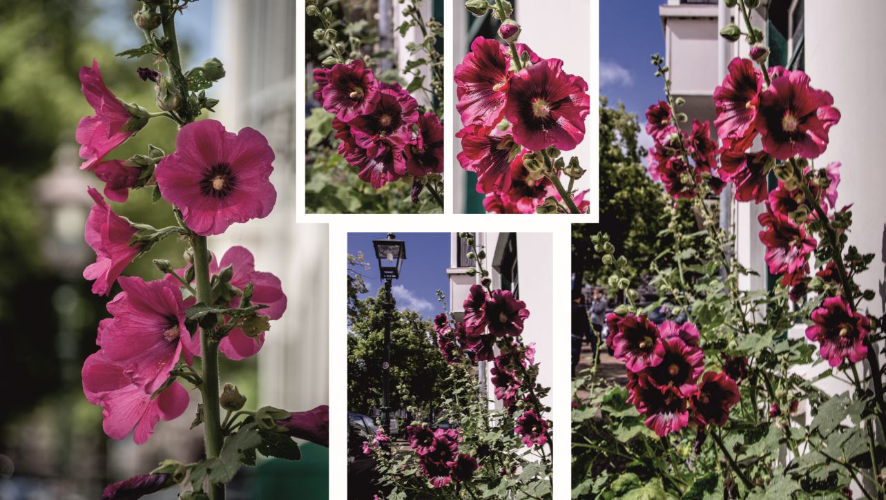 These Hollyhocks Flowers, also known as Alcea, grow on different places in the streets of Haarlem. There are about 60 species of this flower and they are part of the Malvaceae family.