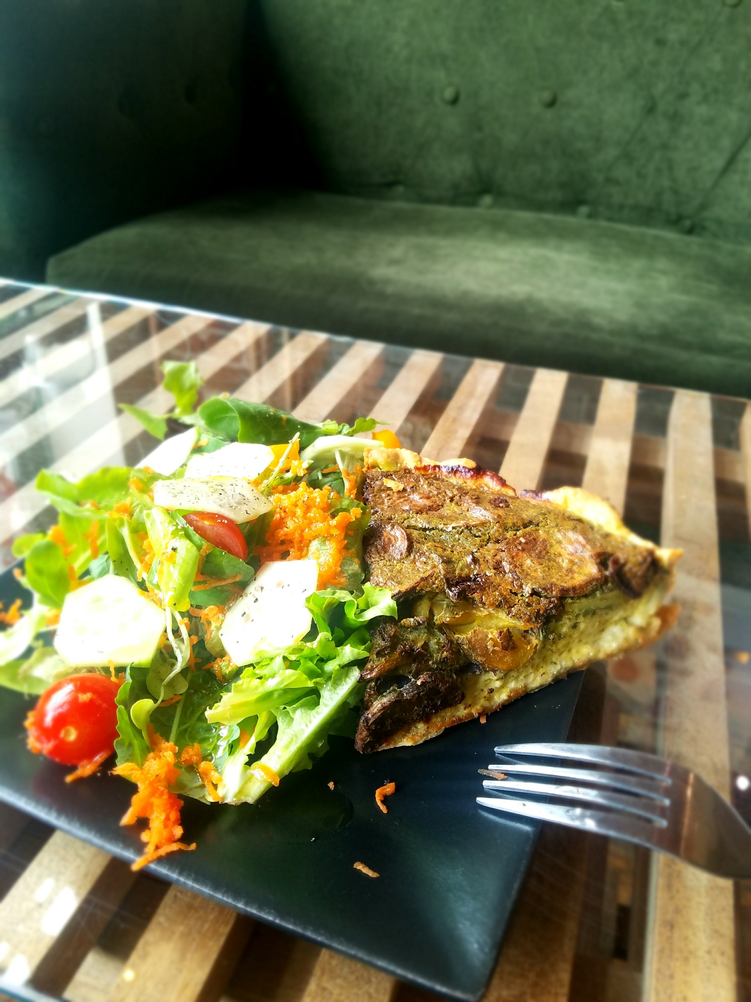 Today I have the Quiche, potato, pesto, goat cheese made from Duck eggs. So Good !!