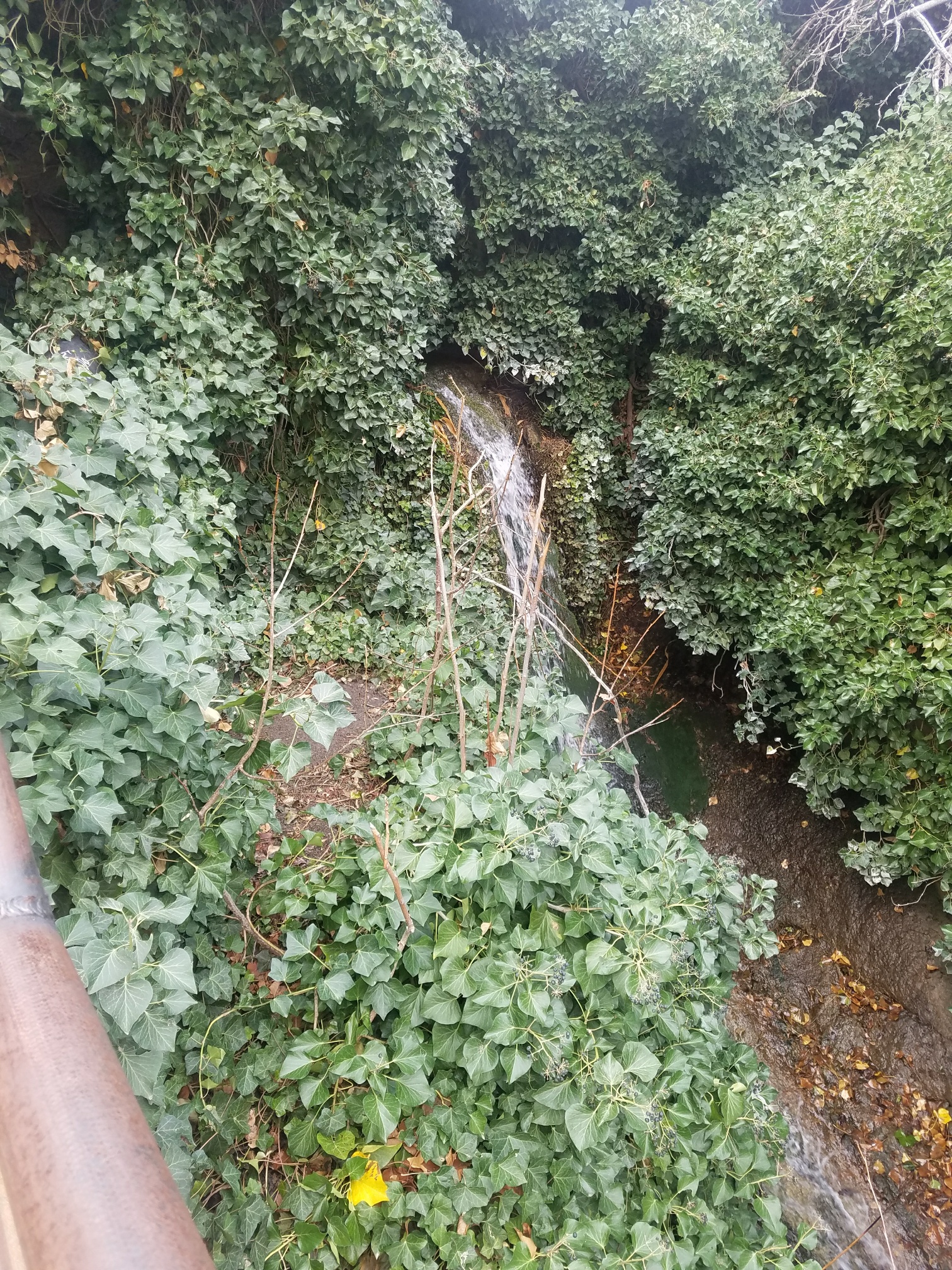 Just a short walk from my house going down the stairs next to the over flow. The water that flows by after the water tanks are full.