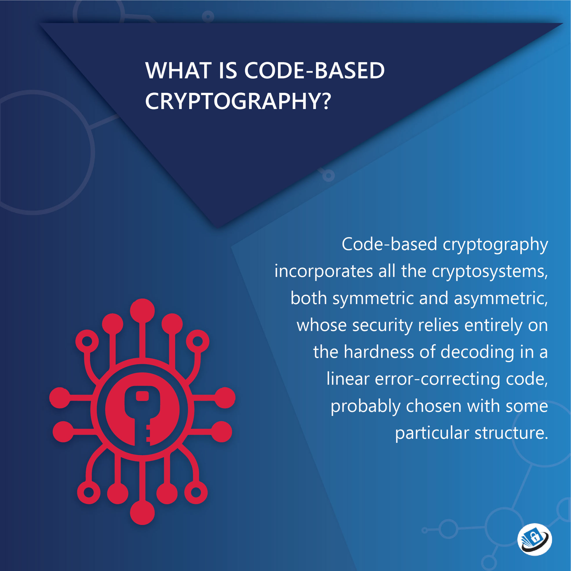Code-based cryptography incorporates all the cryptosystems, both symmetric and asymmetric, whose security relies entirely on the hardness of decoding in a linear error-correcting code, probably chosen with some particular structure.