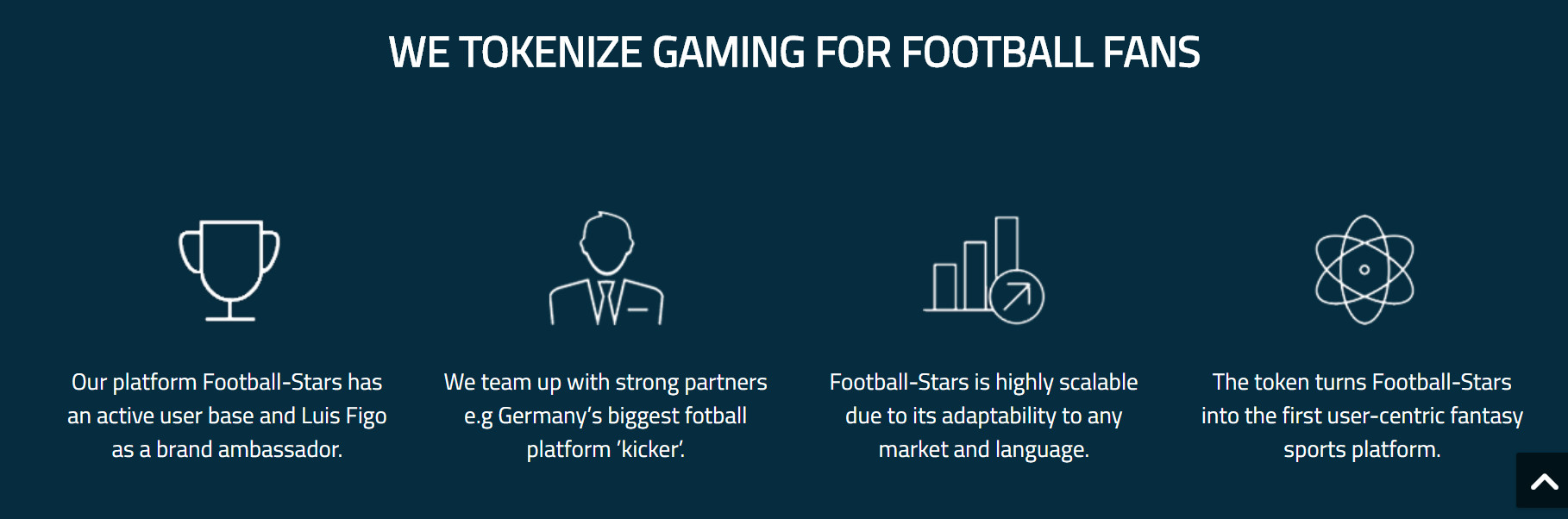 STRYKZ is an ERC-20 based platform that will be implemented on a football platform called "Fatnasy Football-Stars". With the introduction of innovations, the company will acquire many new features on the platform. The Football-Stars platform will increase the range of its focus on the wider public, due to the appearance of the "STRYKZ" token ,which will serve as an incentive for users to create most of the content. This will serve to establish the relationship among the platform and the users for example: users will receive remuneration in the form of tokens STRYKZ, for their contribution to the platform or for assistance in the growth of the community. Next, the user will be able to spend these tokens on various functions of this platform.