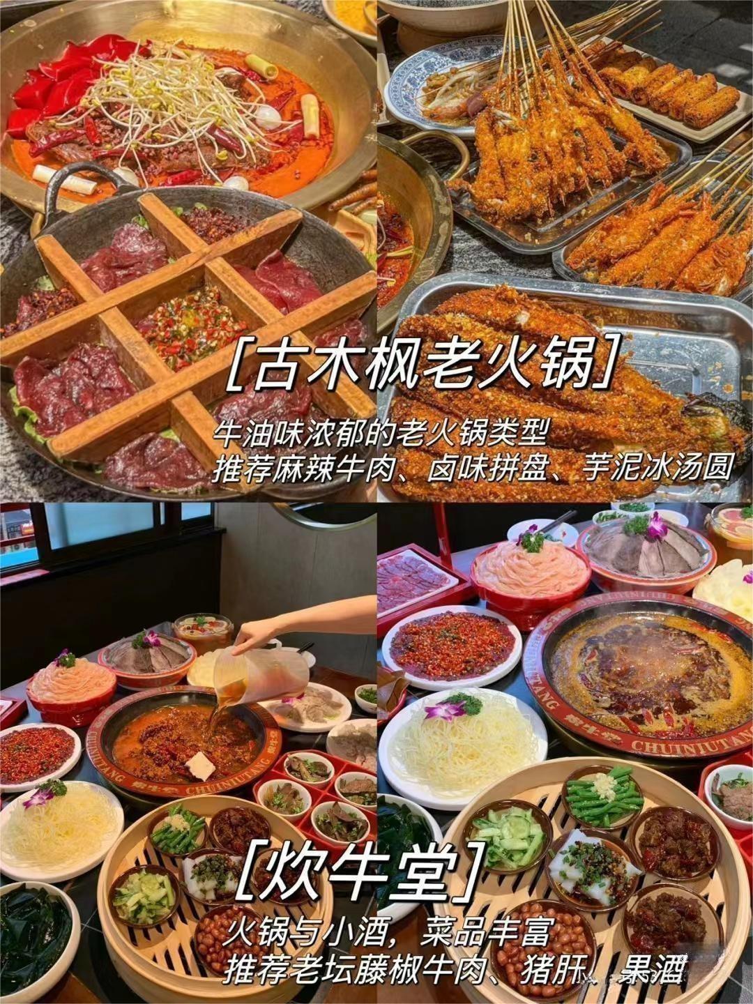 - 古木枫老火锅:正宗的重庆老火锅,味道醇厚,绝对不能错过。