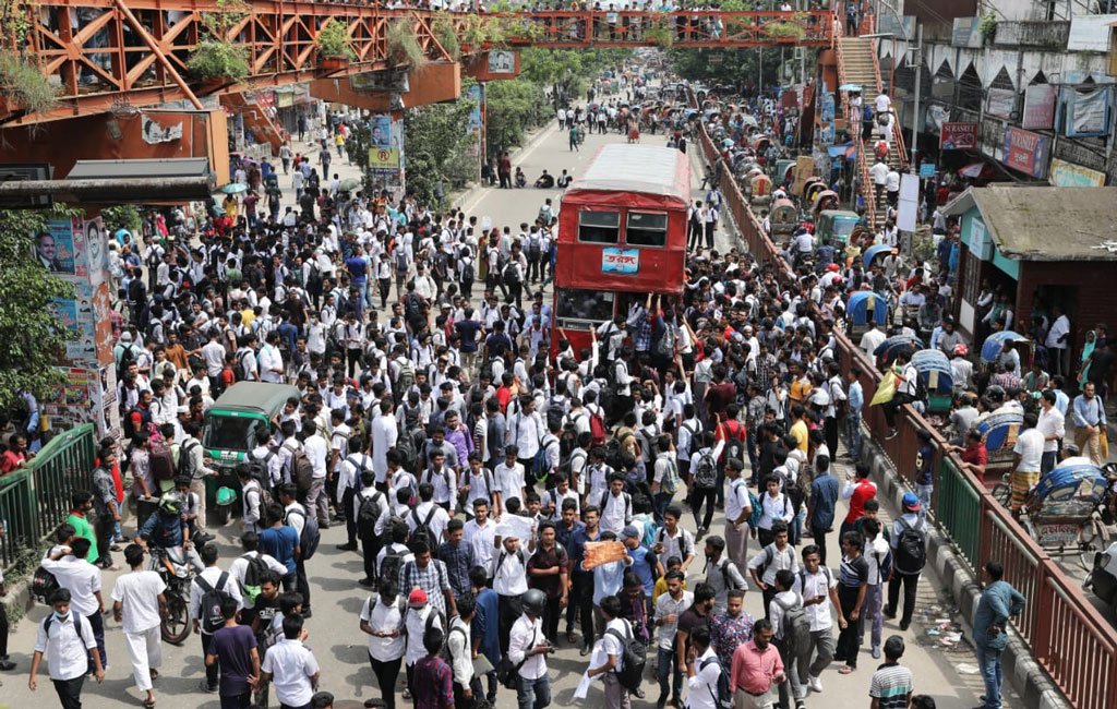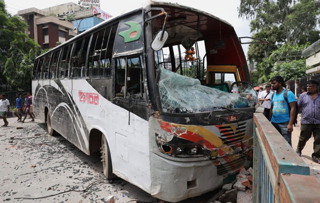 Students from Uttara schools and BGMEA University vandalized at least five buses and a mini-truck during their protest. Later a Bushra Paribahan bus was burned near the Jasim Uddin bus stand.
