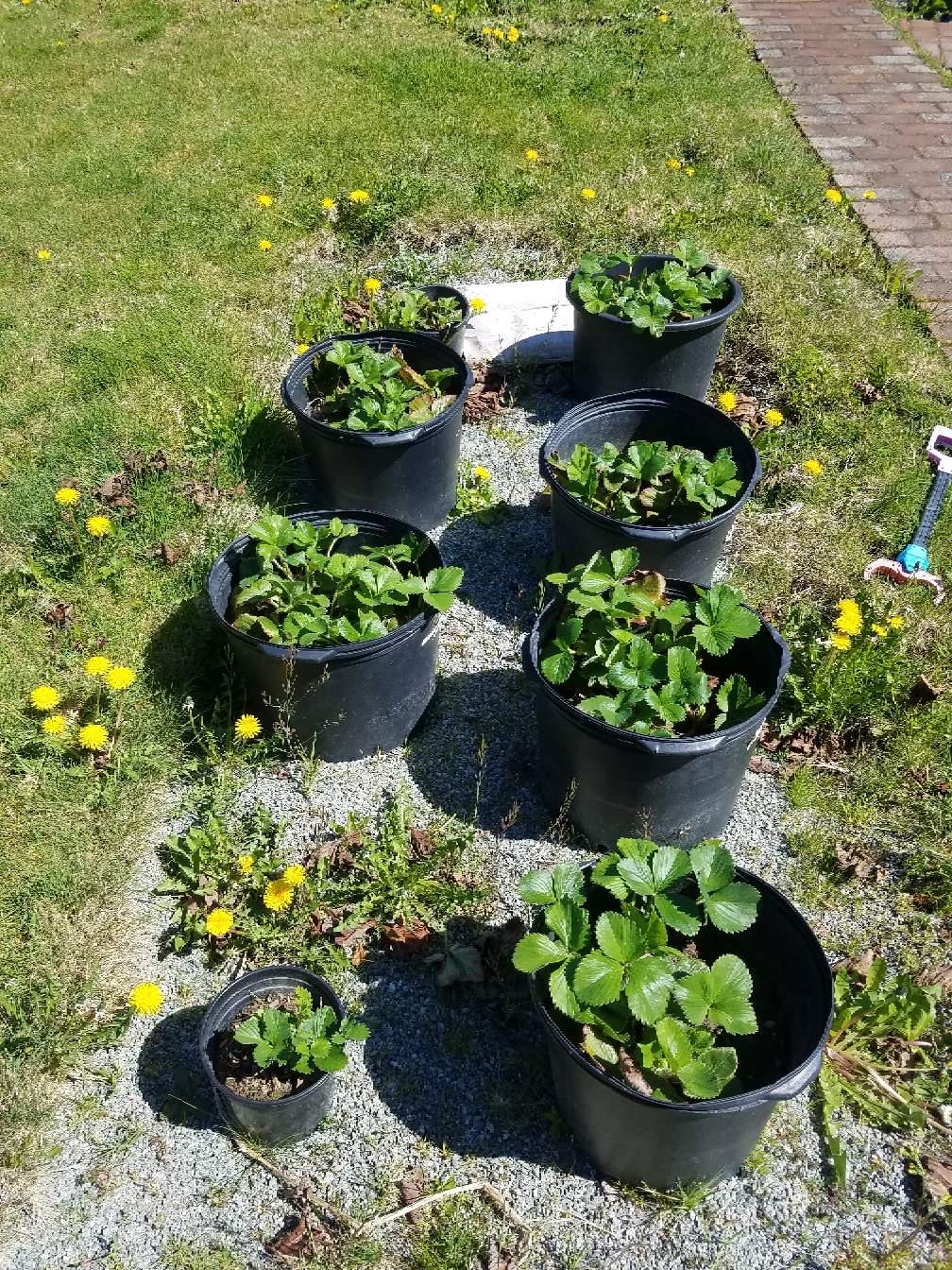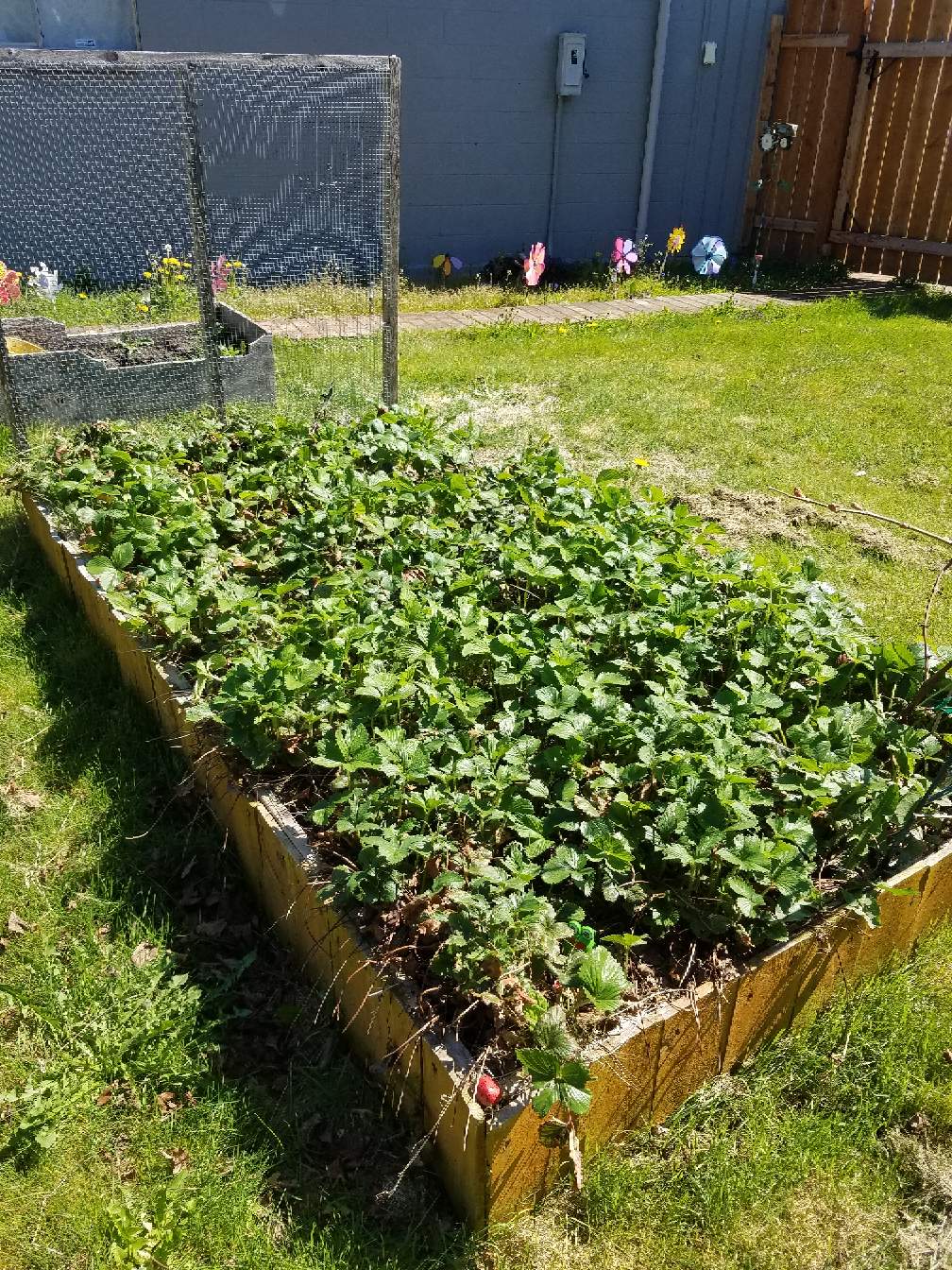 Strawberries from last year are still growing strong.