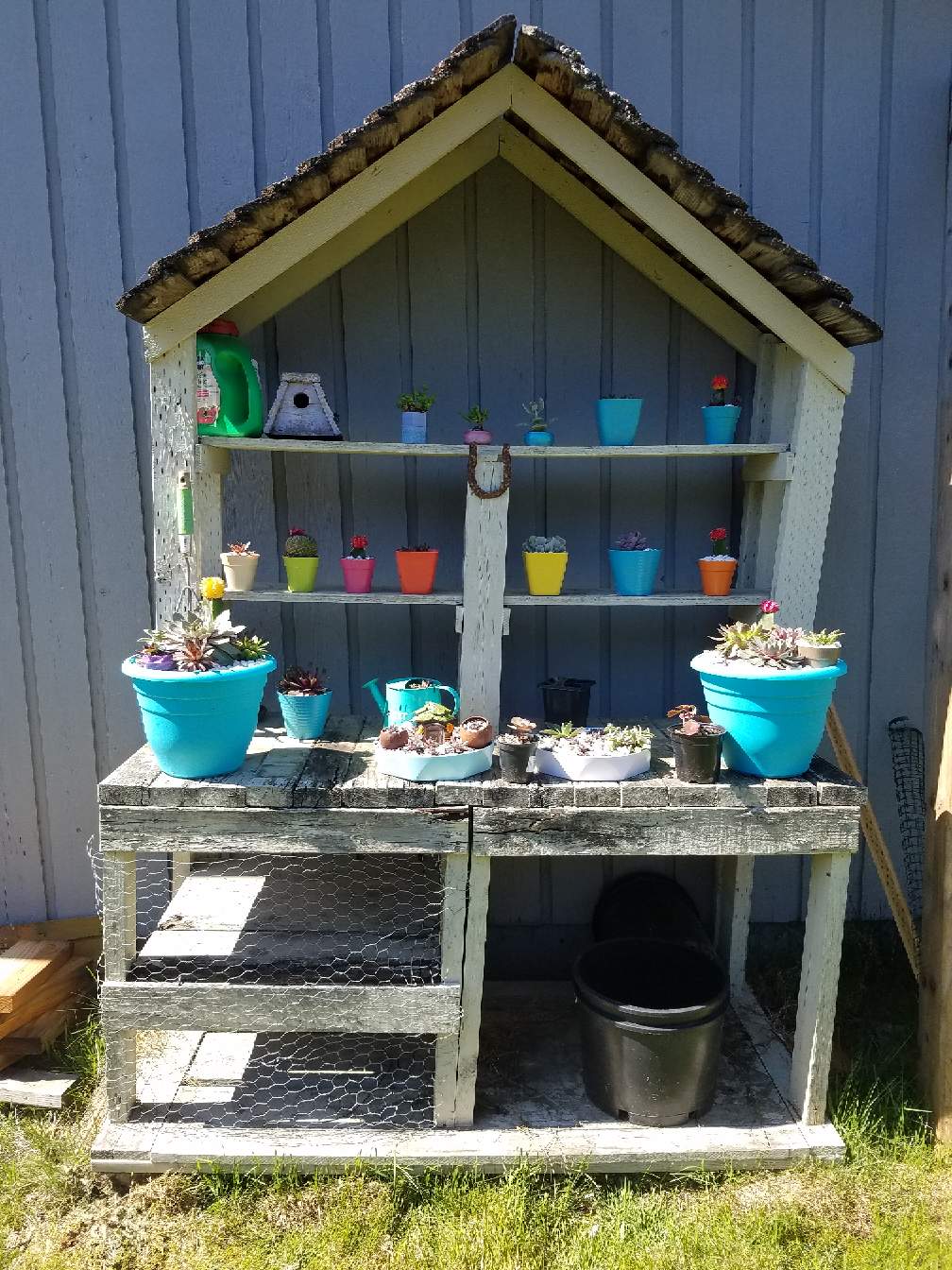 I moved my succulent collection to the gardening bench in the backyard. I'm hoping they'll be protected enough back there but still get some good sunshine.