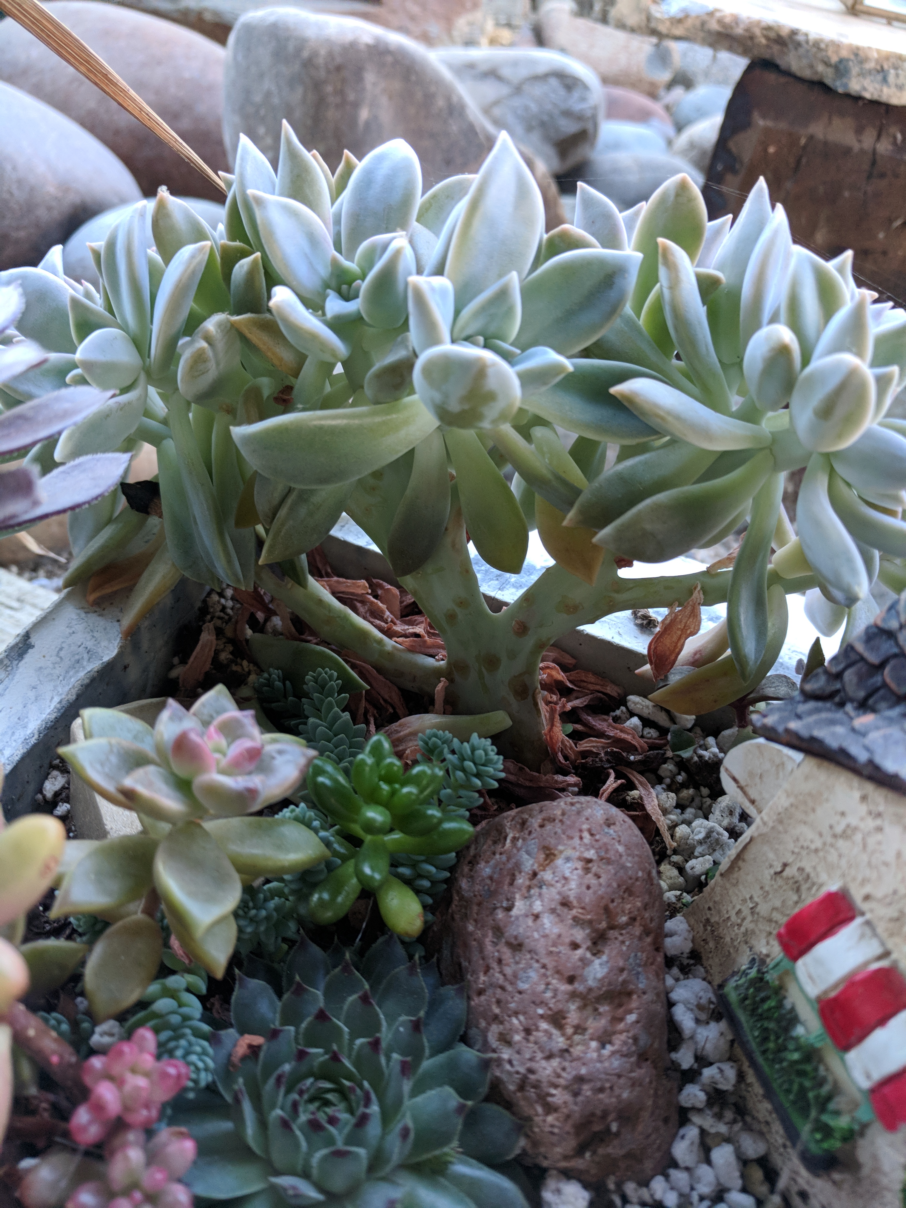 The fairy garden is starting to outgrow its pot and will need to be re-planted soon. Hopefully I can keep this guy's farina in tact, he's pretty near perfect right now.