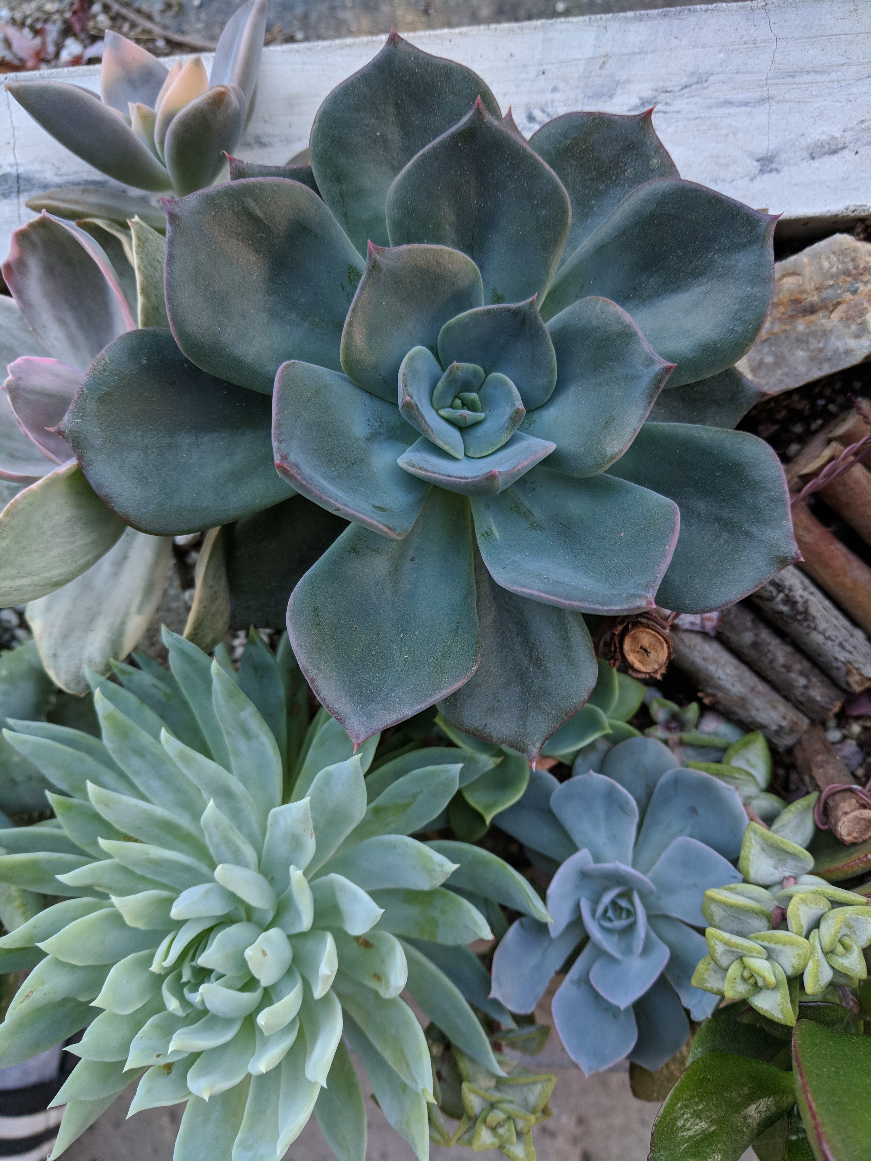 Finally, a little garden maintenance which isn't much for these succulents. I took out some of the old, dried leaves and that was it. This guy is crested, and has such a unique shape but he does tend to lose a lot from the way it grows.