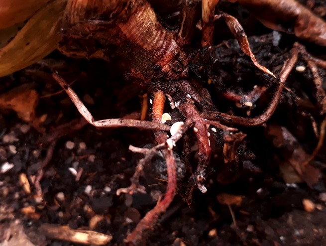 I've been noticing that one of my small aloes wasn't doing very well and assumed that I had been negligent at watering it. Looking at it today, it is much worse so I decided to check if the roots were functional.