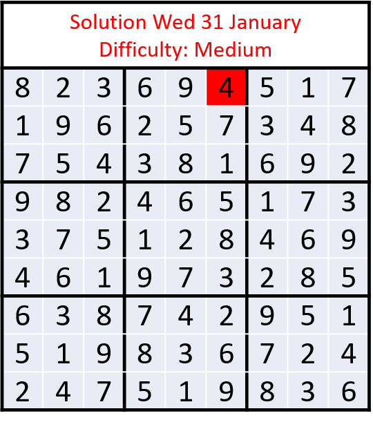 Sudoku Challenge - Wed 7 February - Difficulty: Easy
