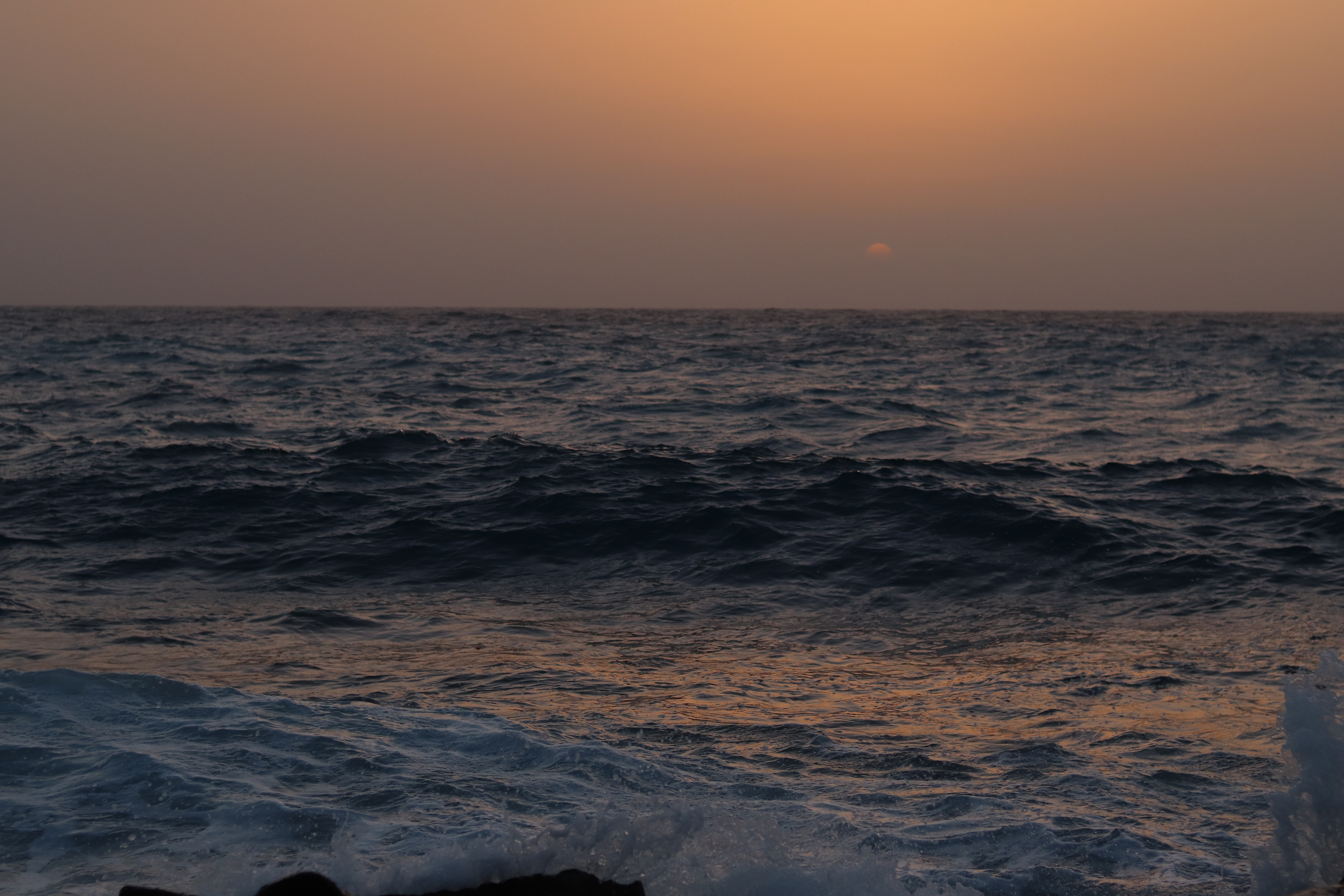 sun setting in red sea