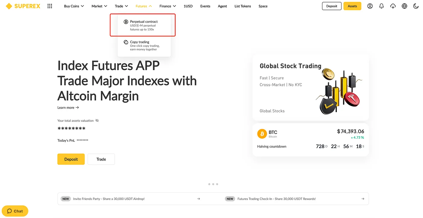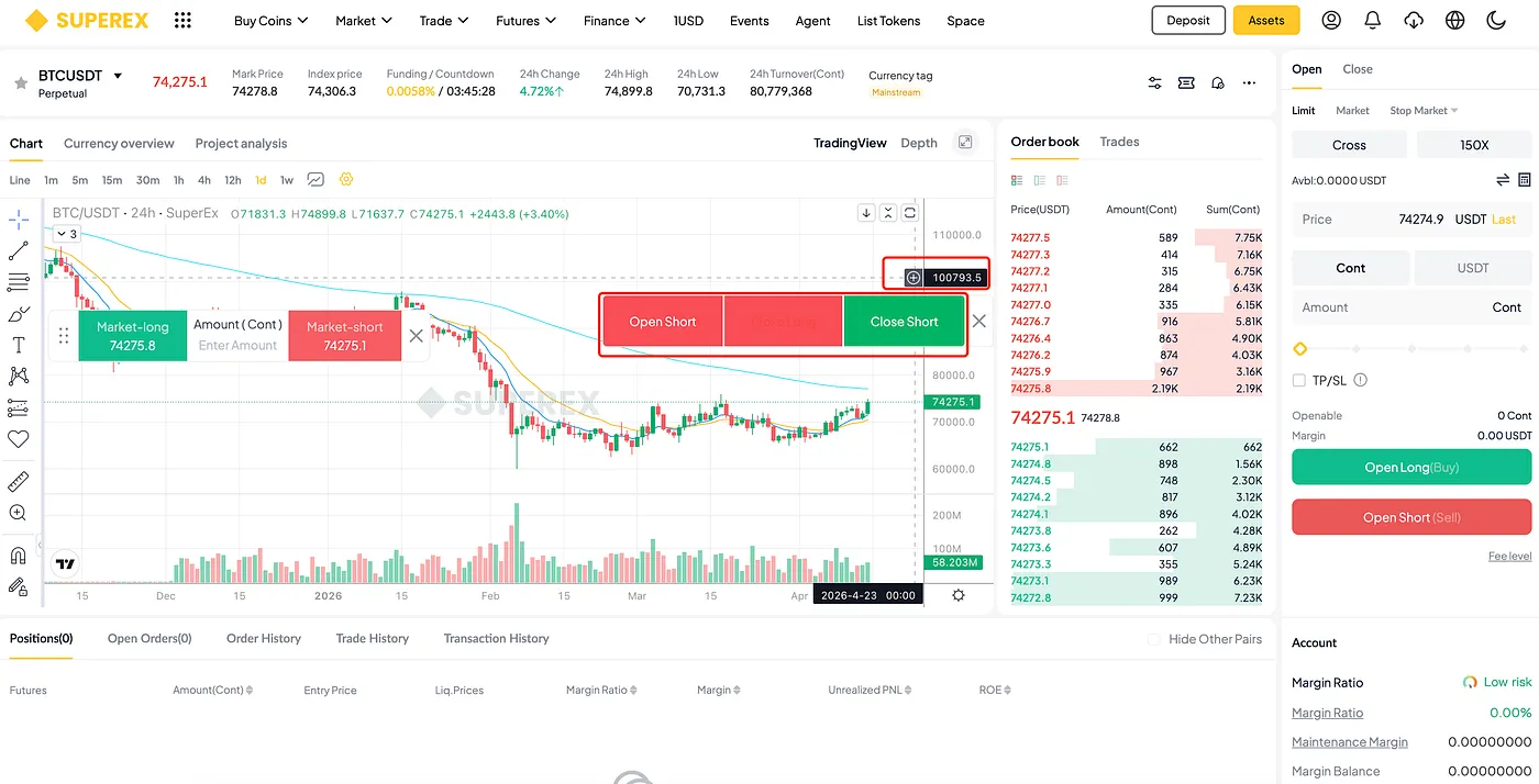 Log in to your SuperEx account, select Futures Trading, and switch the trading chart to the 【Perpetual contract】page.