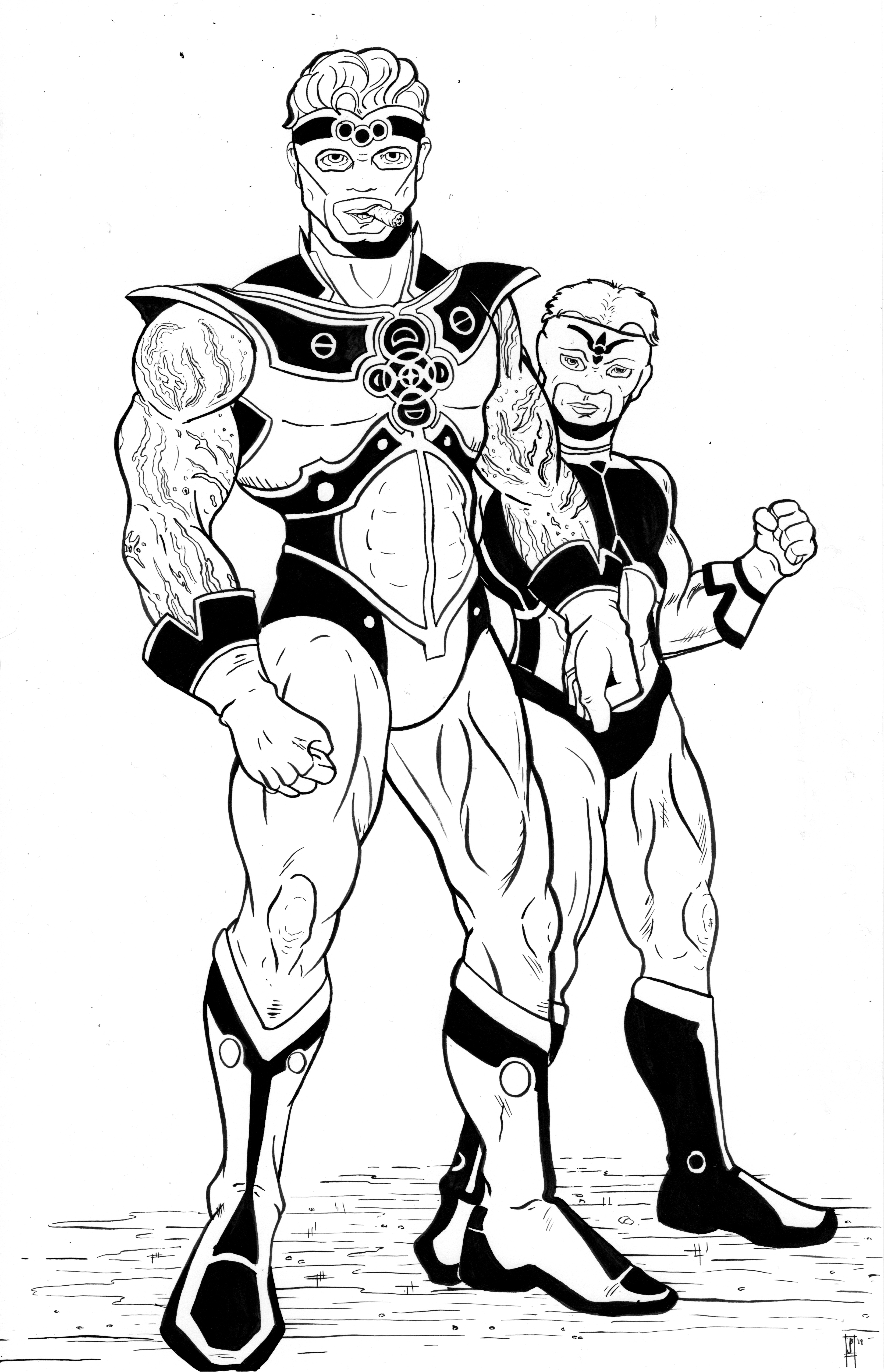 So... though I draw comic books I have never really been a Superhero fan. Not for any particular reason, it just wasn't ever my thing. That being said, I recently had a friend commission a drawing of some superheroes he and his other friend made. It is for a birthday present. Here are the pencils and inked page that I completed. This was a lot of fun!