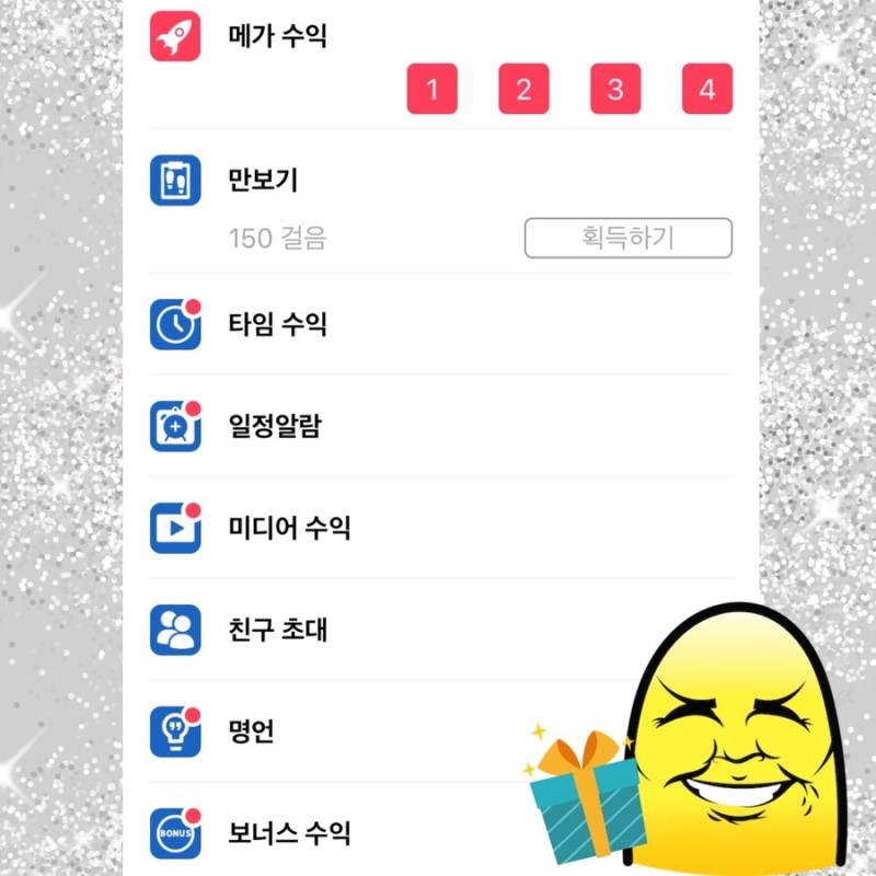 만보기나 명언 카드보기 같은 앱활동을 할 때마다 메가수익의 절반 정도의 EC가 생깁니다.