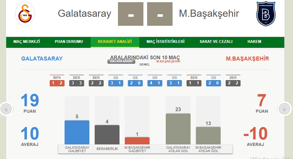 İç saha ve dış saha performanslarına baktığımız zaman Galatasaray bir adım daha önde olduğunu görüyoruz.Bir de Galarasaray'ın evindeki rekabet analizlerine bakalım.