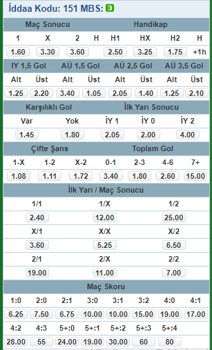 TAHMİN : MS - 1 ( 1.60 oran )