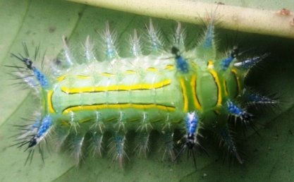 Two types of poisons released from behind this type of caterpillar cause burning and inflammation. They eat lots of trees and bushes