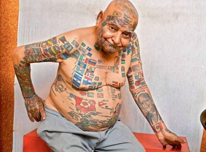 This man is very unique, he perpetuates the flag on his body, more than 150 flags are attached all over the body, unique and very strange