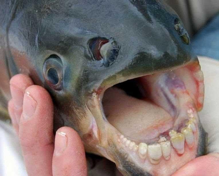 The fish is very scary and super scary, this fish is very strange because his teeth just like human teeth