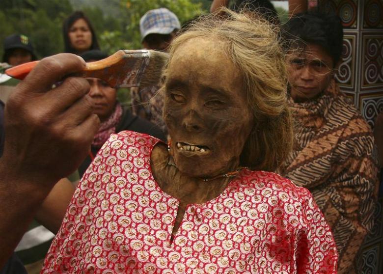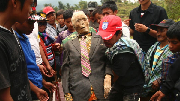 Hello @yoo1900, a very unique ritual performed by Toraja community, that is the process of wearing clothes and baths on corpses, I hope you can support it.