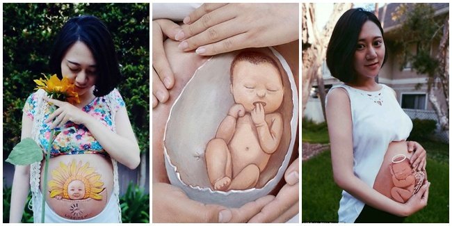 A unique woman, portraying a baby in the stomach while pregnant, is unique and very interesting