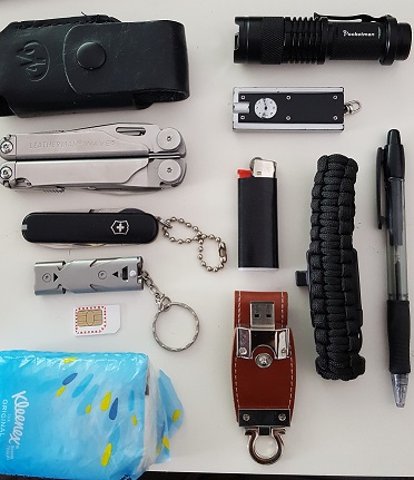 Enfin, pour conclure, j'ai toujours sur moi quelques petites sacoche en plastiques, des serres flex, du gel hydro alcoolique,quelques pansements et mon porte feuille.