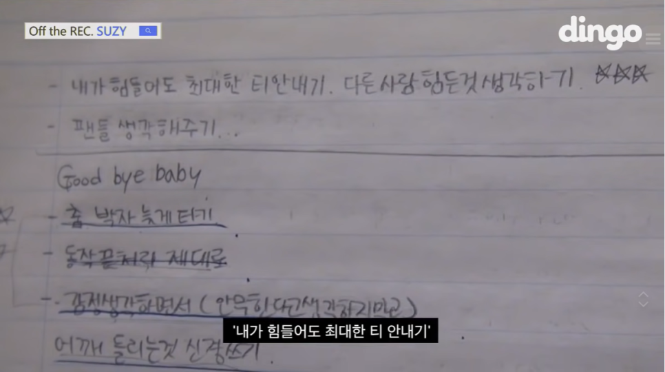 실제로 '일기 쓰기'가 취미라고 하니 수지는 분명 부지런히 삶과 생각을 기록하는 사람일 것이다.
