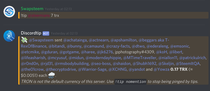 Tip : : You can get rewarded by the Discord admins and members with tips and airdrops using the Discord Tip bot in our Discord server.