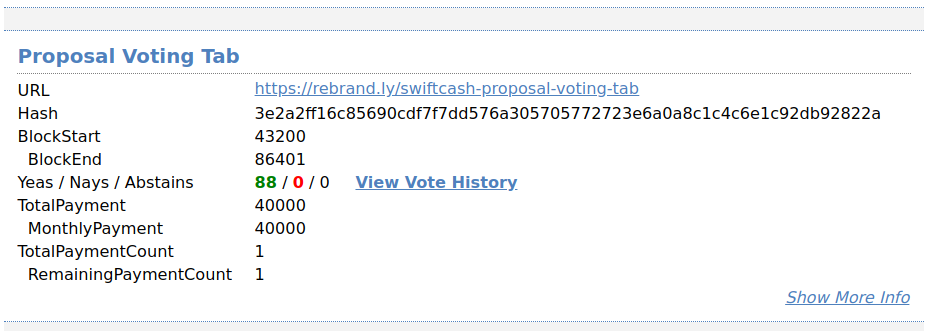 You can either see a list of proposals HERE or by typing mnbudget show in the console. Each proposal has a link to its details. We did recommend everyone to use the STEEM platform for the details but not everyone has done so! You can also see the number of votes, the monthly amount being asked for as well as the total amount which is the monthly amount multiplied by payment counts.