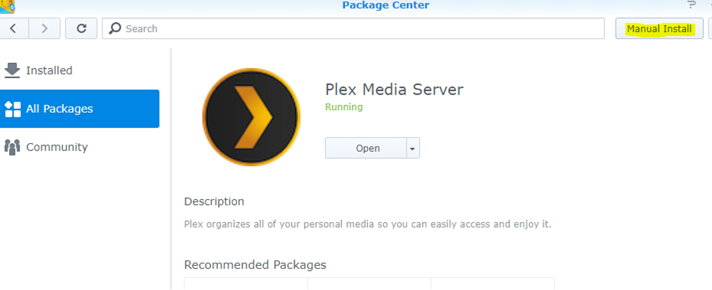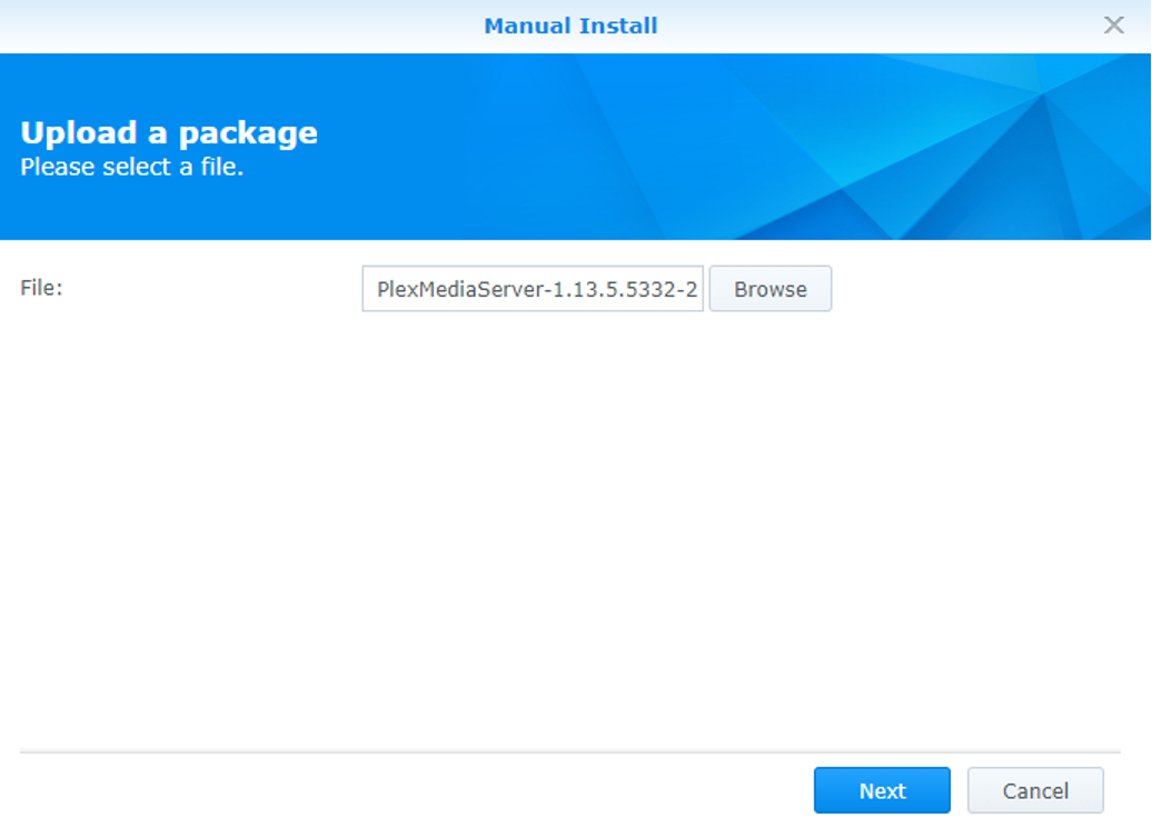 In Package Center go to ¨Manual Install¨