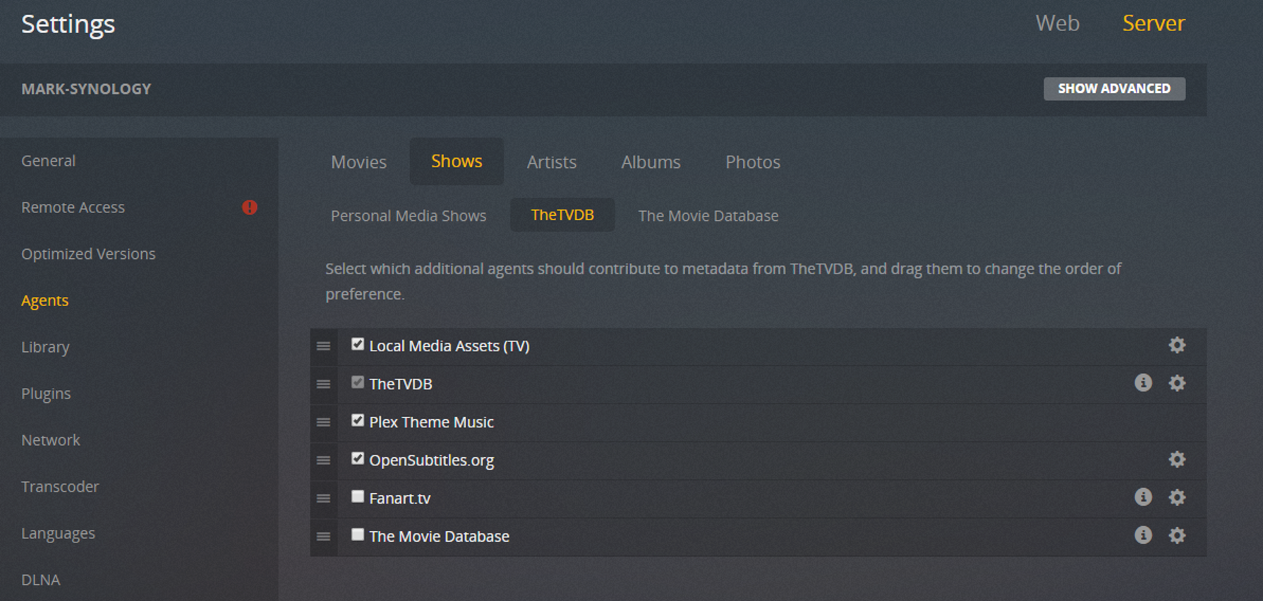 Once installed go to Configuration -> Agents -> Shows