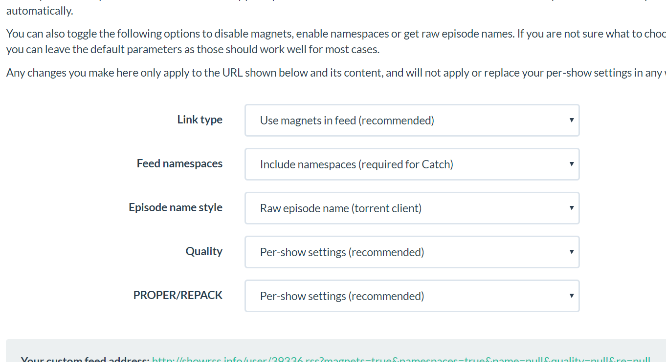 From that moment your TV shows will start to download automatically. If you want to add new shows in the future you can go showsrss.info. It is not need to update the feed.