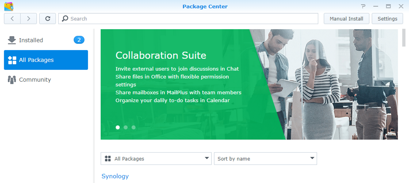 Once the VPN service is configured we will install the need packages from the ¨Package Center¨
