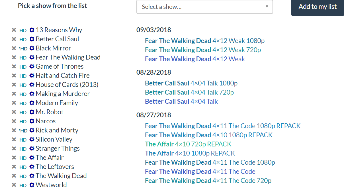 Select the TV-shows you would like to download automatically.