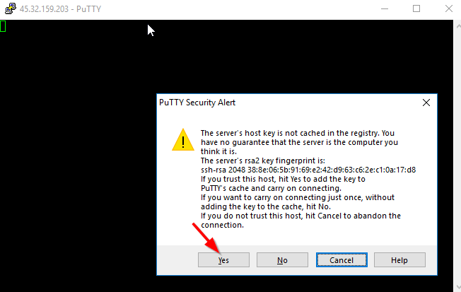 Make a connection to IP address of your VPS and log in with root account and accept warning.